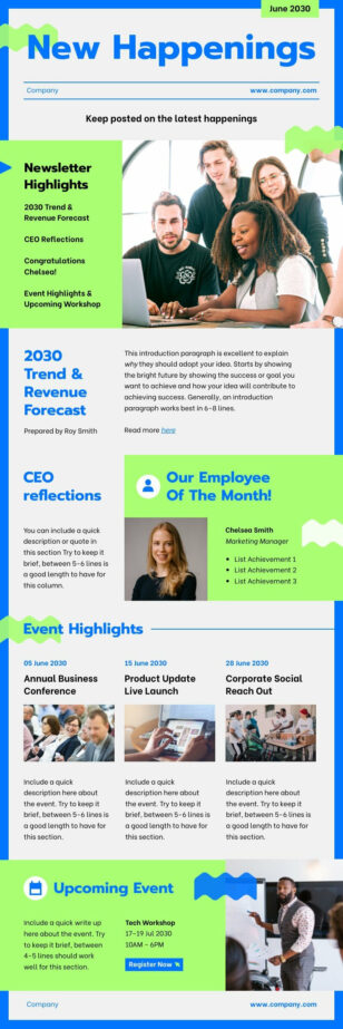 Create eye-catching graphics for your company with our free, editable business infographic templates.